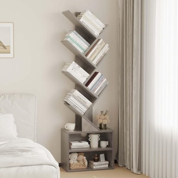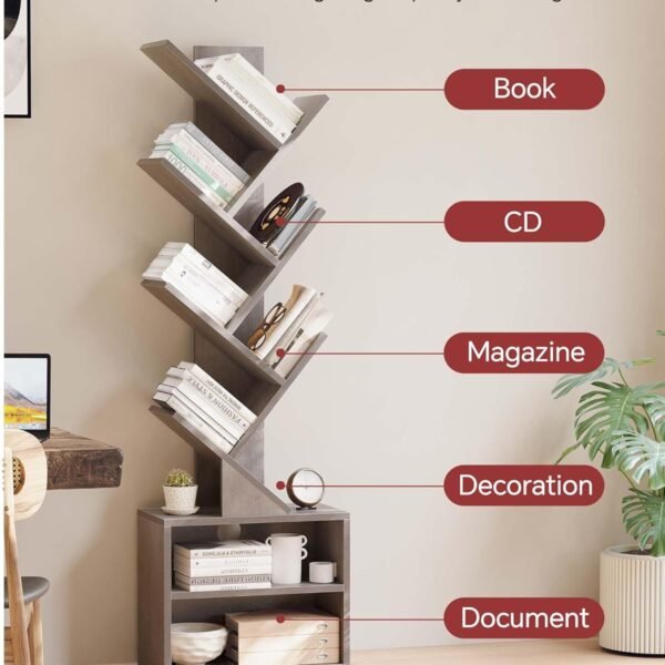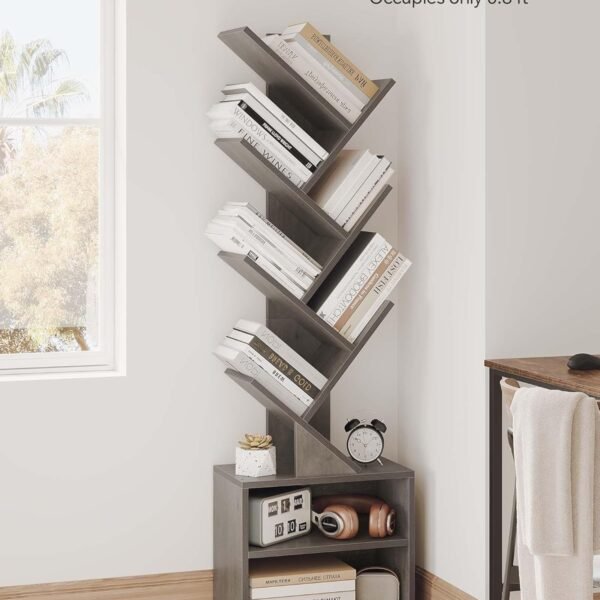- ??Value Pack??: Small Bookshelf for Small Spaces: Featuring a compact design, the floor standing tree bookshelf optimizes floor space, making it an excellent choice for bedrooms, home offices, corners, hallways, or smaller living rooms. This narrow small bookcase organizer provides ample storage for books, CDs, game cassettes, decorations, and more. Keep your belongings stylishly organized, ensuring a neat and clutter-free space. ( Book shelf dimensions: 47.4″H*14.6″L*”7.9″W )